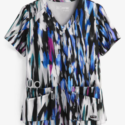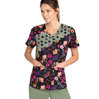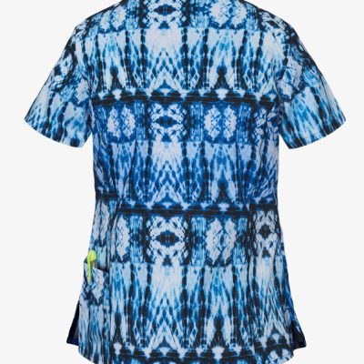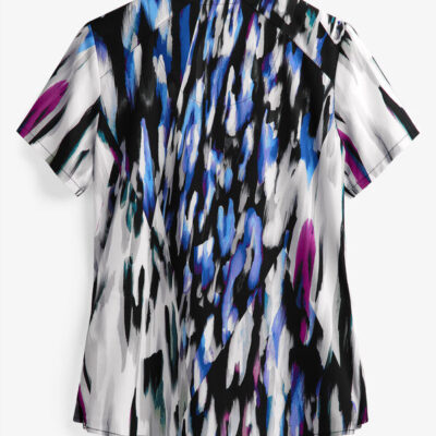Женская пестрая блузка с V-образным вырезом, 4 кармана.