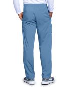 Men's pant. 4-pocket, elastic silicone draw-cord waistband with zip fly and single cargo pocket.