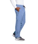 Men’s pant. 4-pocket, elastic silicone draw-cord waistband with zip fly and single cargo pocket.