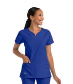 Men's blouse. 3-welt pocket, sport V-neck with angled back yoke.