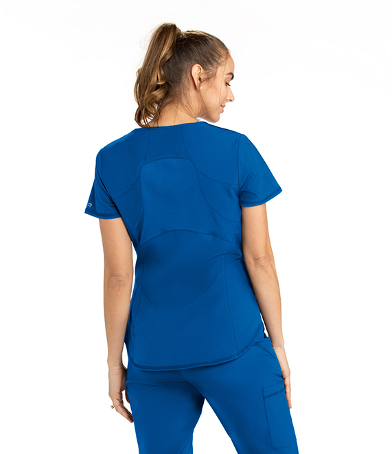 V-neck blouse, 4 pockets.