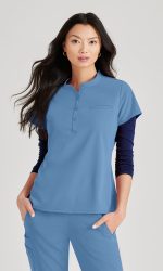 Women’s top , round neck with buttons, chest pocket
