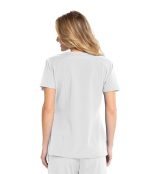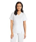 Women’s blouse. 4-pocket, V-neck with contrast details at shoulder and pocket, pen slot and front side slit at hem. Modern Fit.