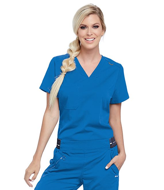 Women’s V-neck blouse with pocket.