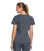 Women’s blouse, 3-pocket, V-neck princess seam front and back with rib knit back and shaped notched hem. Modern Fit.