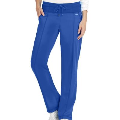 Women's pant. 4-pocket, yoga knit waistband with draw-cord front leg seaming with reverse cover stitching. Modern Fit.