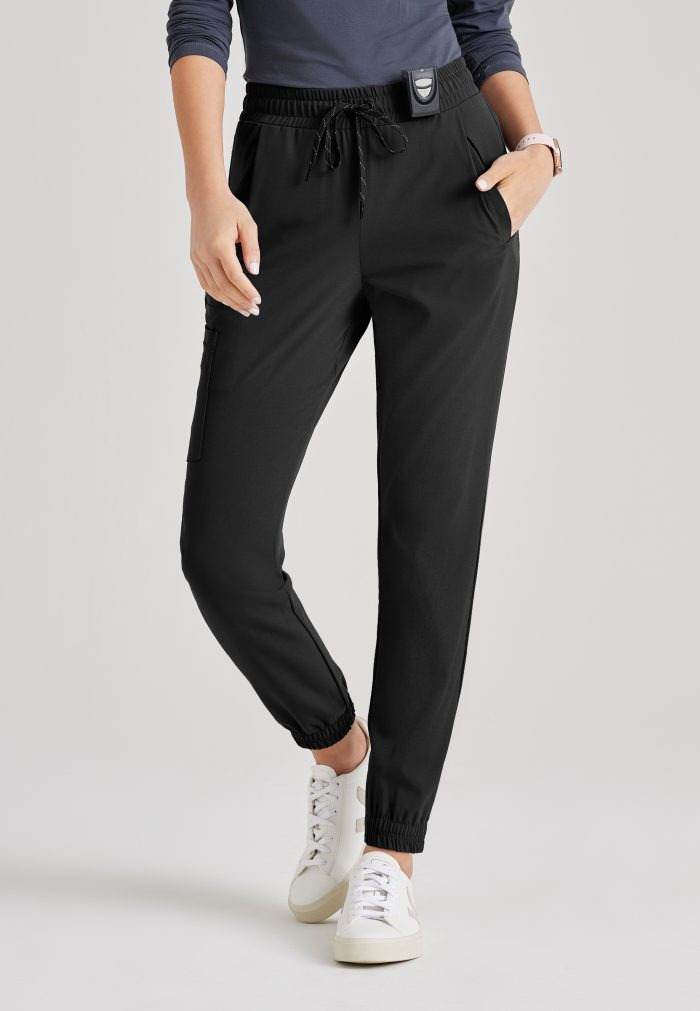 Women's 3-pocket pant, logo plush elastic waist, mid-rise.