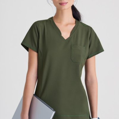 Blouse V-neck with ribbon, 1 chest pocket Matching pants: GSSP627, GSSP625 Fabric Material: 48% CiCLO® Polyester 44% Recycled Polyester 8% Spandex Available sizes: XXS-5XL. For missing sizes or colors, contact by e-mail or phone.