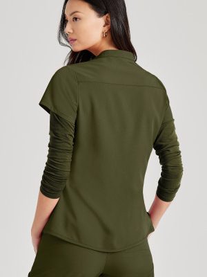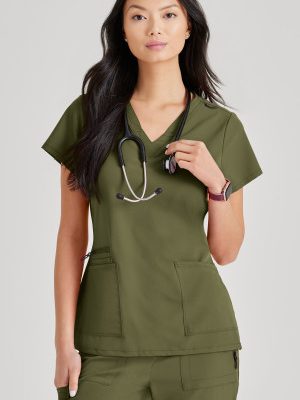 Women's blouse with V-neck. 2 pockets + 1 mini inner pocket.