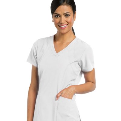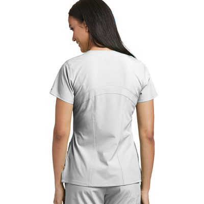 Women's blouse. 2-pocket, notch neck with tab detail and pen slot, split needle, front and back yoke. Modern Fit.