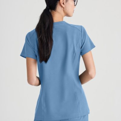 Palaidinė V formos kaklas su juostele, 1 kišenė ties krūtine.