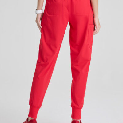 Moteriškos kelnės elastiniu juosmeniu, 5 kišenės, priekyje rišamos raišteliu.