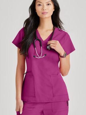 Moteriška medicininė palaidinė, kaklas V formos, 4 kišenės