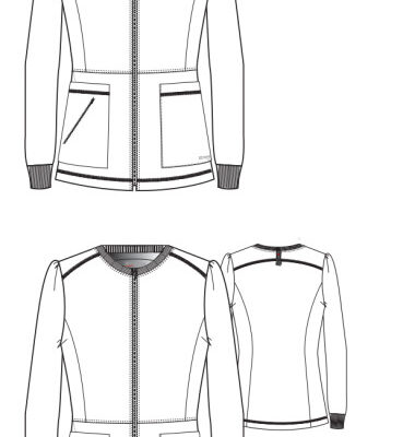Moteriškas švarkelis su užtrauktuku, apvali iškirptė, 5 kišenės, 1 kišenė su užtrauktuku