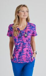 Женская медицинская блузка, V-образный вырез, 1 кармана.