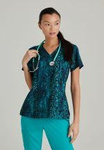 Женская пестрая блузка с V-образным вырезом, 4 кармана.