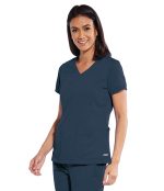 Женская блузка с V-образным вырезом и 3 карманами.
