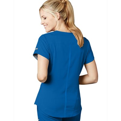 Women’s pant, 5-pocket, flat front with silicone draw-cord, elastic back, mid-rise, double-pocket single cargo, lapped vent with orange bartack accent detail at hem.