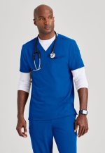 Мужская блузка с V-образным вырезом. 3 кармана.